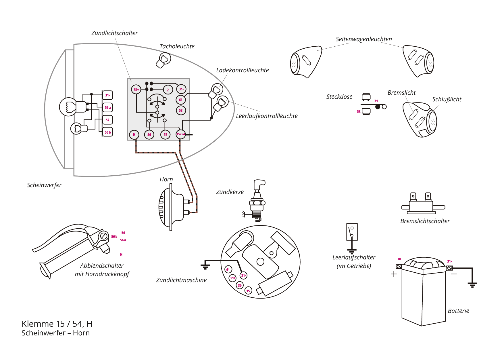 Klemme 31-, 58, 15 / 54, 57, 56, H